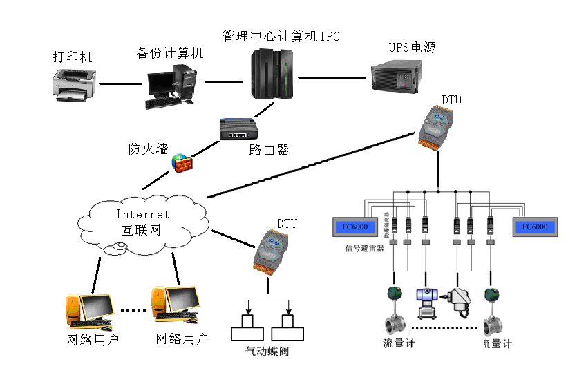 遠程控制 現(xiàn)場儀表可設(shè)置控制模塊,控制模塊可以接受管理中心計算機傳來的指令打開或者關(guān)閉繼電器,通過繼電器控制電動閥,從而實現(xiàn)遠程實時控制功能。