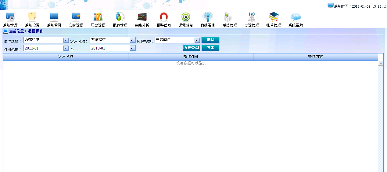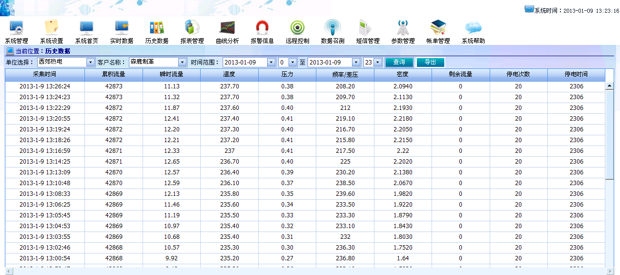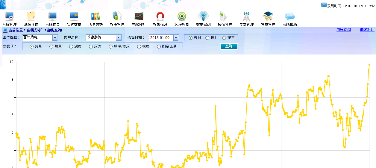 1、系統(tǒng)可察看任意時間段和任意計量點的數(shù)據(jù);